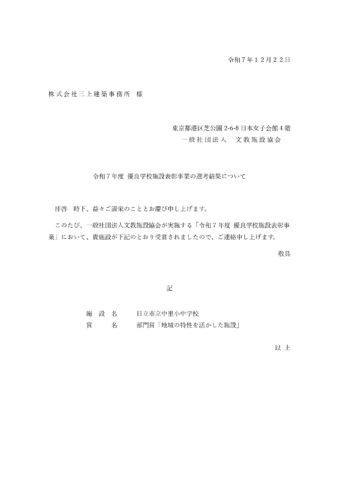 《日立市立中里小中学校》在文教设施协会的令和7年度优秀学校设施表彰事业中荣获【发扬地域特色设施】部门奖 在(一社) 文教设施协会主页上公布了获奖结果。 http://rief.or.jp/business/commendation